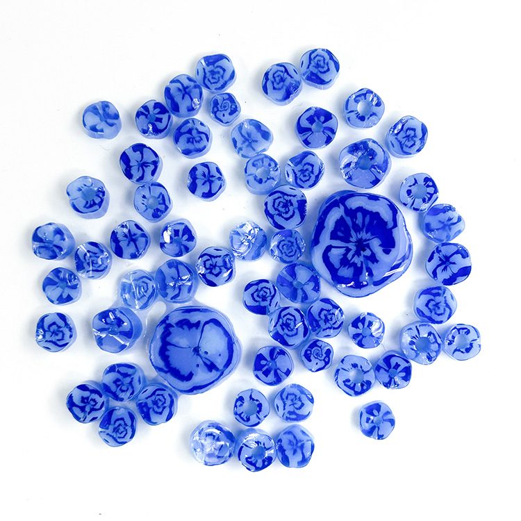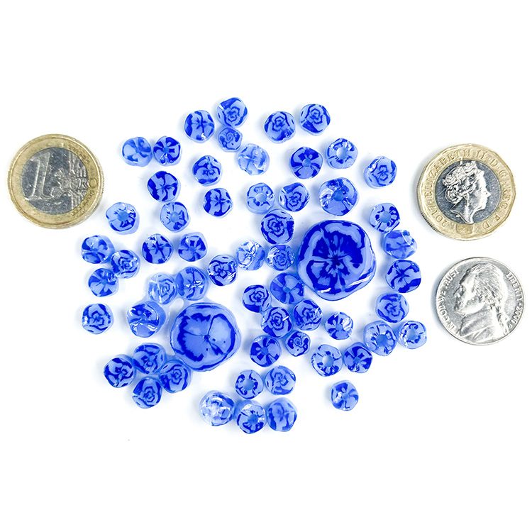 Curious Blue Blossom Murrine hollows. All made with 100% Bullseye Glass 90COE. They can be purchased in 25g bags. These could be a mix of XL and normal depending on what sizes we have in stock.