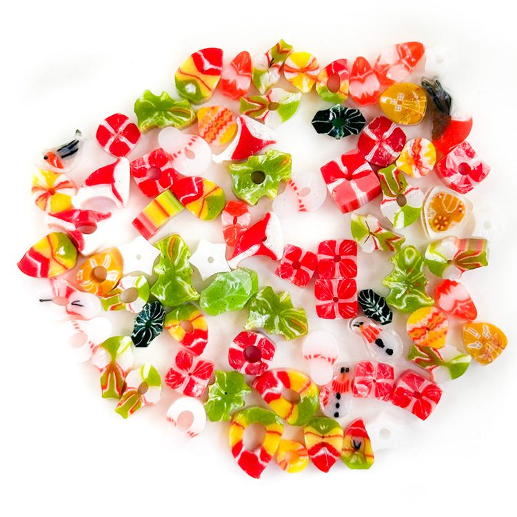The best part? You can buy these curious murrine at a budget-friendly price - all sourced from the end of the pull when patterns may start to fade or the cane becomes hollow, as well as from the beginning of the pull when only a portion of the pattern is visible.