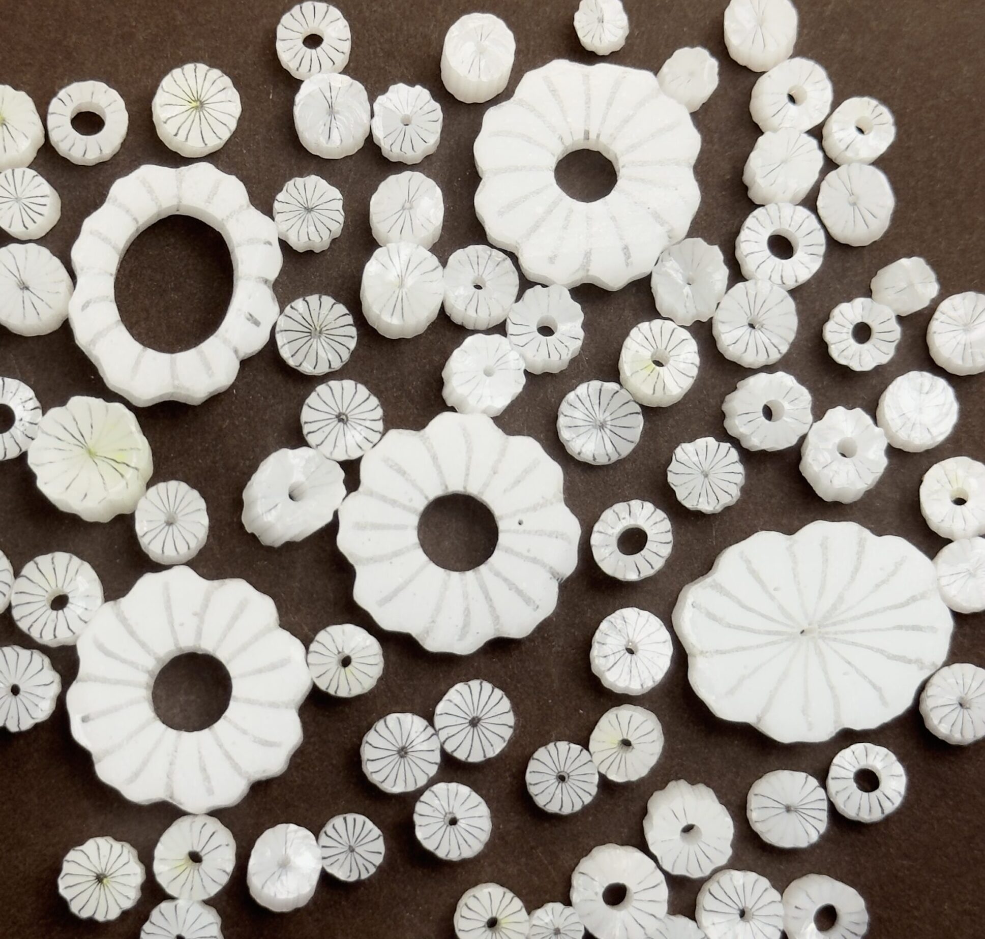 The best part? You can buy these curious murrine at a budget-friendly price - all sourced from the end of the pull when patterns may start to fade or the cane becomes hollow, as well as from the beginning of the pull when only a portion of the pattern is visible.