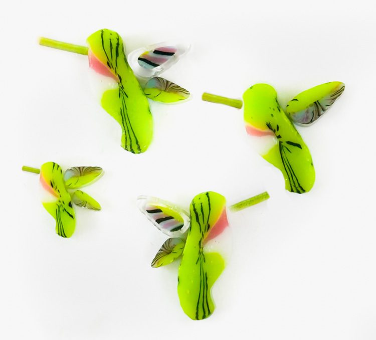 Curious – Hummingbird. All made with 100% Bullseye Glass 90COE. They can be purchased in 25g bags.
