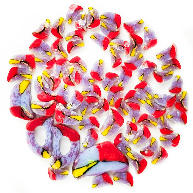 The best part? You can buy these Curious murrine at a budget-friendly price - all sourced from the end of the pull when patterns may start to fade or the cane becomes hollow, as well as from the beginning of the pull when only a portion of the pattern is visible.
