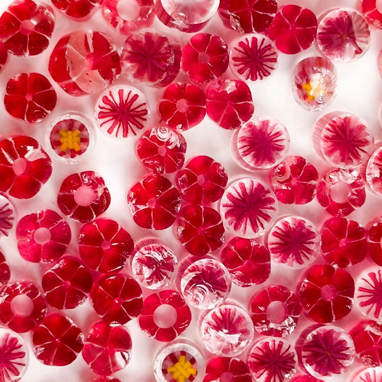 The best part? You can buy these curious murrine at a budget-friendly price - all sourced from the end of the pull when patterns may start to fade or the cane becomes hollow, as well as from the beginning of the pull when only a portion of the pattern is visible.