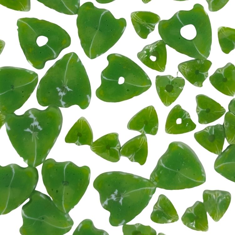 Curious – Sunflower Leaves. All made with Oceanside Glass 96COE. They can be purchased in 25g bags.