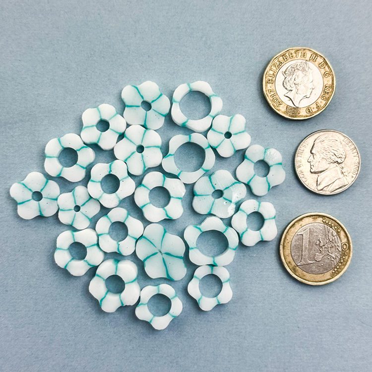 Curious XL – Aqua Flower. All made with Oceanside Glass 96COE. They can be purchased in 25g bags.