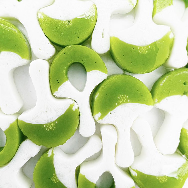 Curious XL – Green Mushroom. All made with 100% Bullseye Glass 90COE. They can be purchased in 25g bags.