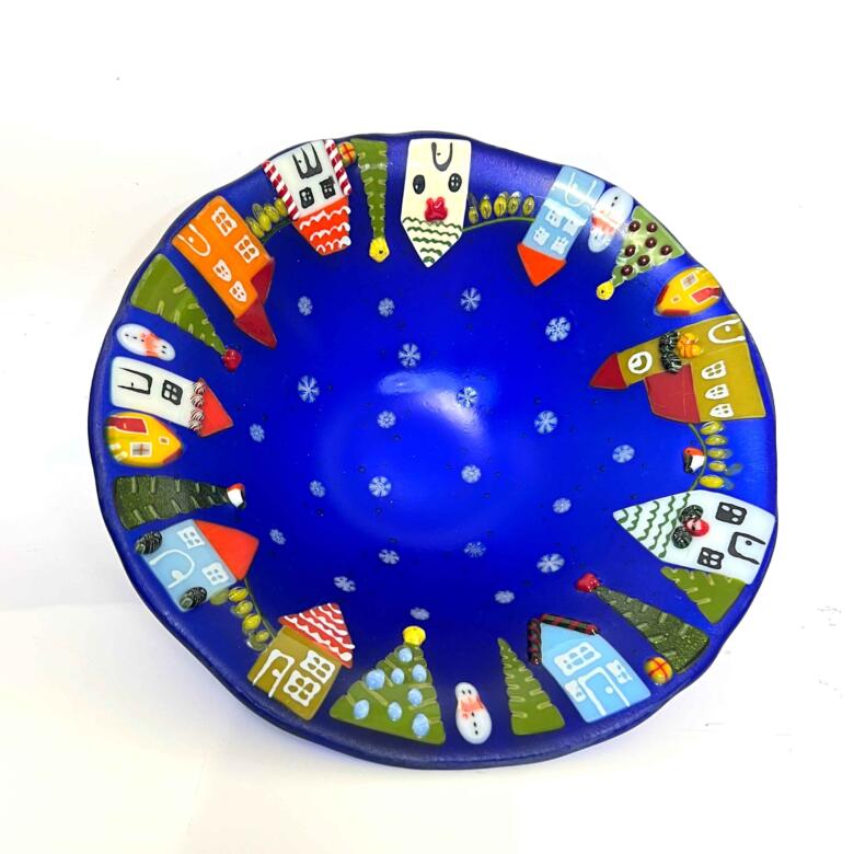 Elevate your space with the enchanting world of fused glass art from Tabitha's Glass Emporium. Our Fused Glass Art Christmas Village Bowl collection transforms any room with its blend of craftsmanship, creativity, and magic.