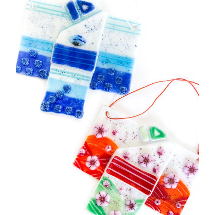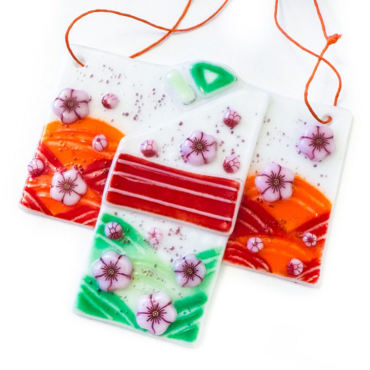 Elevate your space with the beauty of these kimono hanging decorations, brought to you by Tabitha's Glass Emporium. These stunning pieces combine the essence of Japan's tradition and fused glass art, offering a refreshing touch to any room.