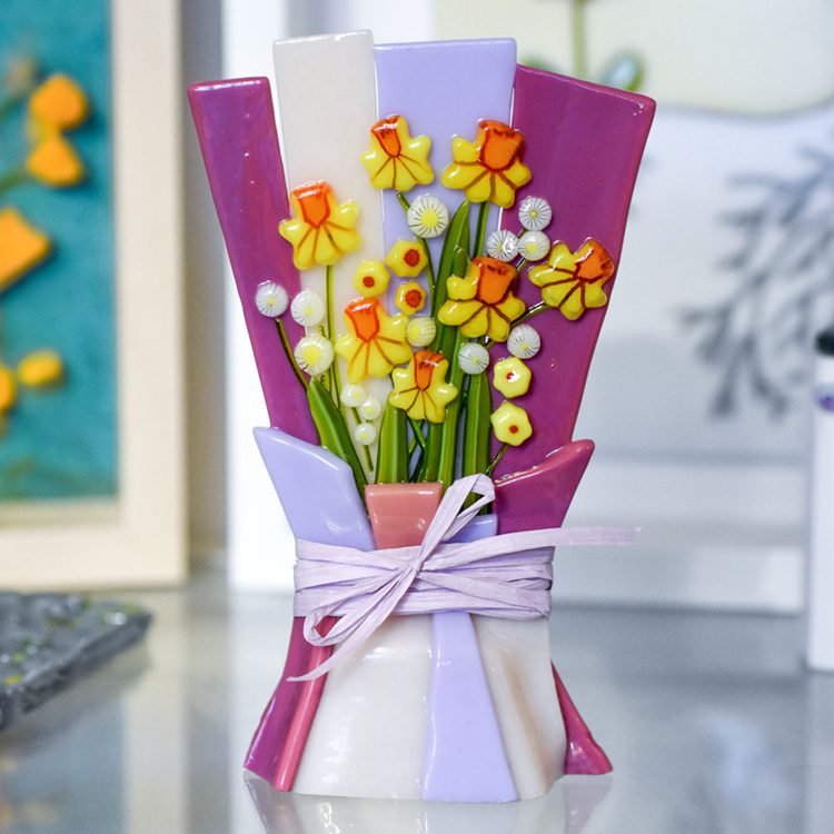 Each piece is individually handmade in Croatia. Variations in color, texture, and composition highlight the artistry of fused glass and create a truly unique piece of décor.