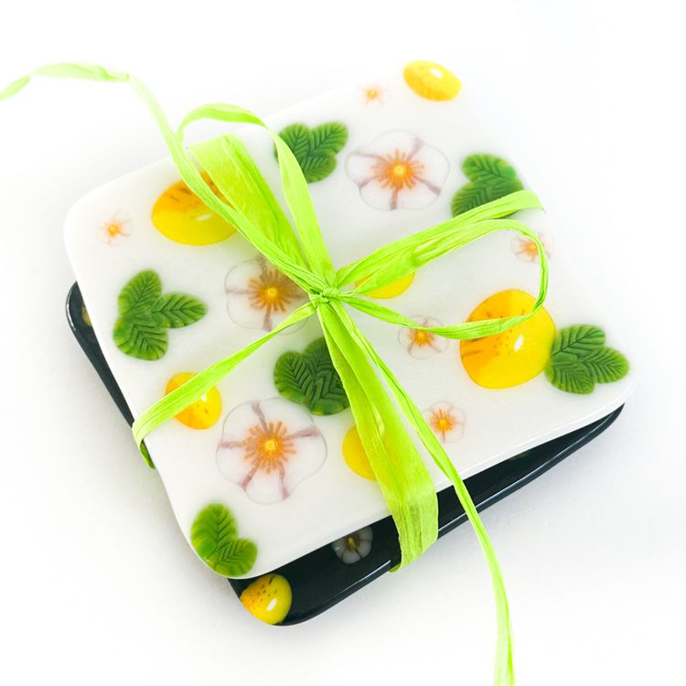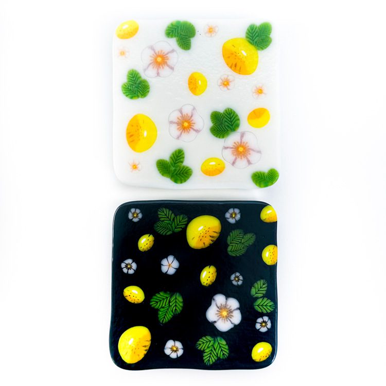 At Tabitha’s Glass Emporium, we pride ourselves on creating unique pieces that reflect natural beauty. Own a piece of handcrafted brilliance with our Fused Glass Lemon Coasters. Add a pop of color and elegance to your home today. These coasters also make a thoughtful gift for friends and family who appreciate unique, handcrafted art.
