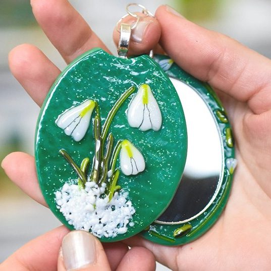 Fused Glass Snowdrop Mirror
