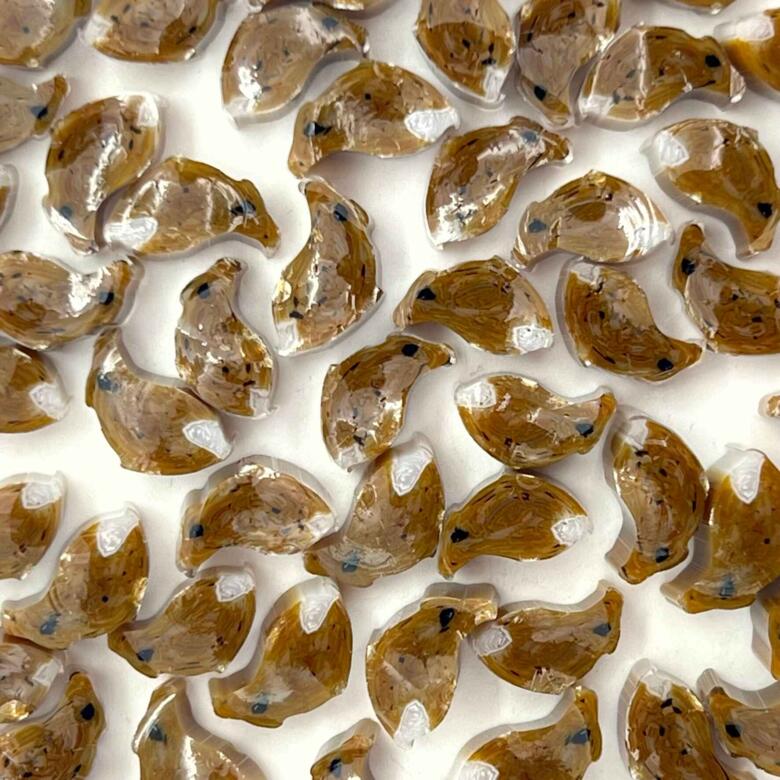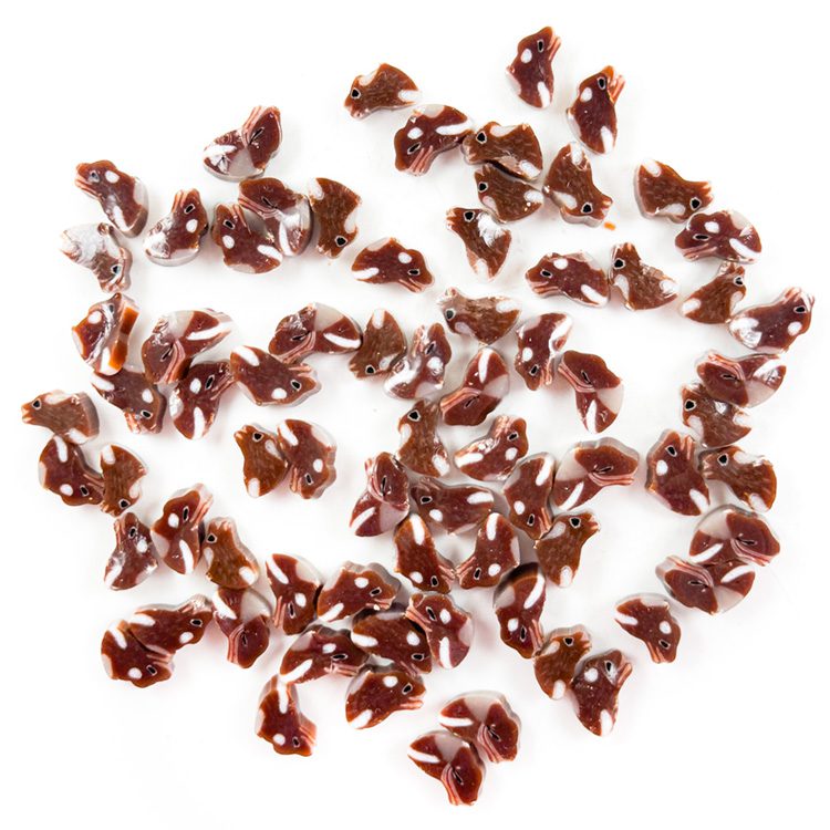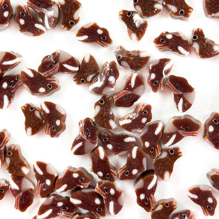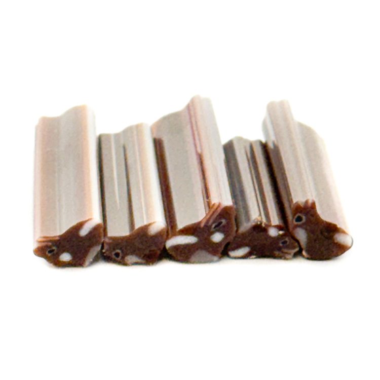 At Tabitha’s Glass Emporium, we proudly offer our designer animal murrine collection, while showcasing intricate patterns reminiscent of millefiori. Thanks to a distinctive process crafted by Tabitha Burrill, these murrines exhibit stunning detail and quality. Add a touch of whimsy to your glass projects with these charming Brown Bunny murrine, featuring delightful animals, perfect for bringing your creations to life!