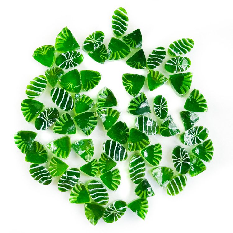 Murrine – Christmas – Green Candy – Oceanside Glass – 96COE. The perfect addition to your festive artwork, browse our Christmas collection for a wide range of choice. Consists of 20 Green Candies.