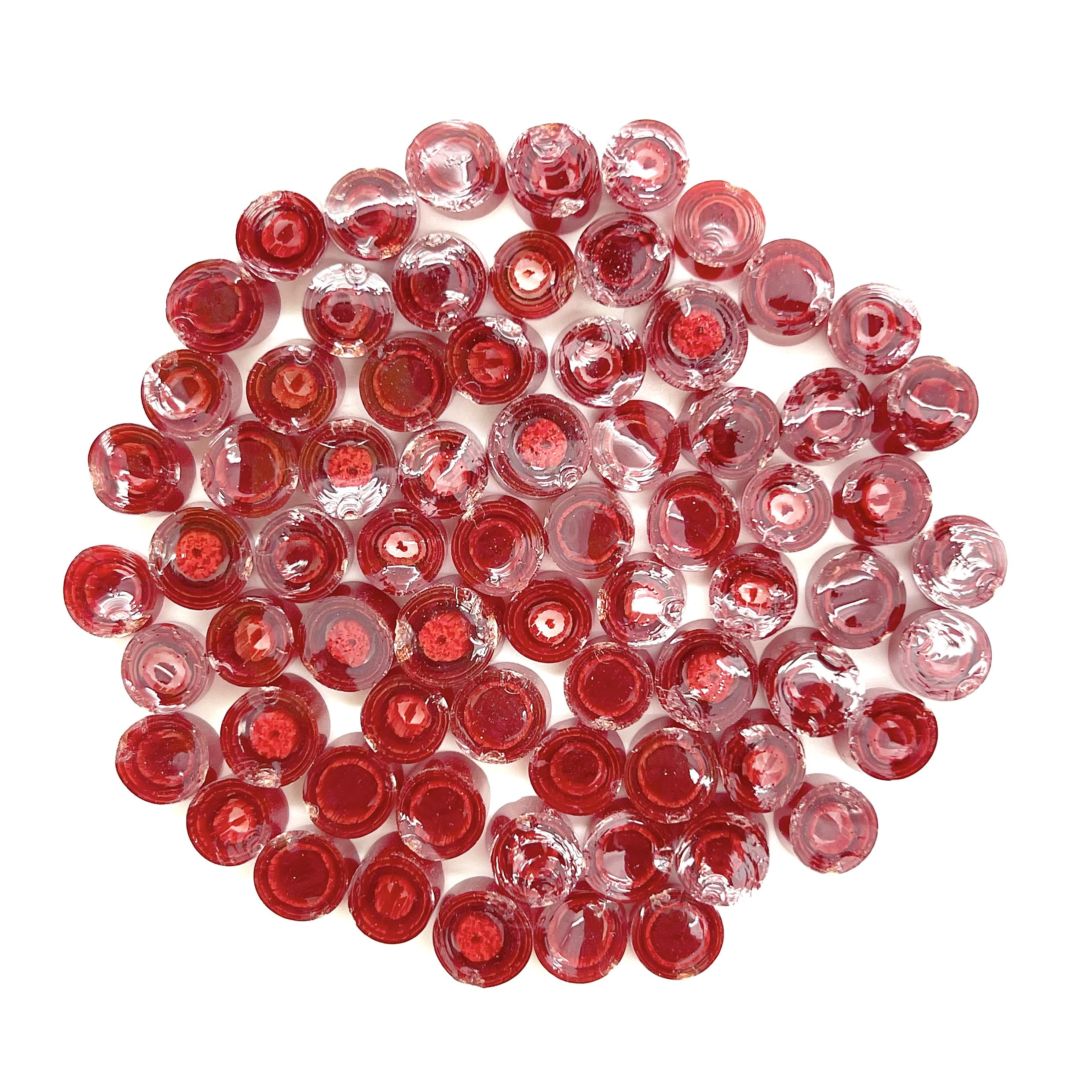 Our Float Glass Murrine in Basic Red Color is part of our basic collection. Tabitha Burrill at Tabitha’s Glass Emporium developed a unique process to create these murrine. They resemble millefiori and provide an affordable option for your glass projects.