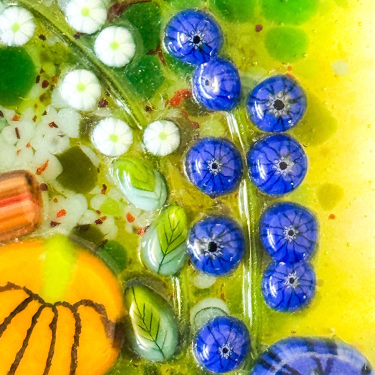 We craft every murrine with 100% Bullseye Glass 90COE, maintaining the highest quality.
