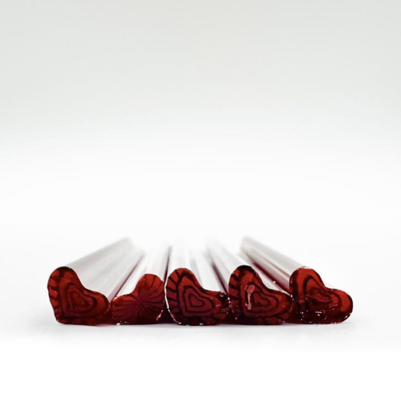 Satisfy your glass artist need with these beautiful red heart murrine. Made from Oceanside glass.