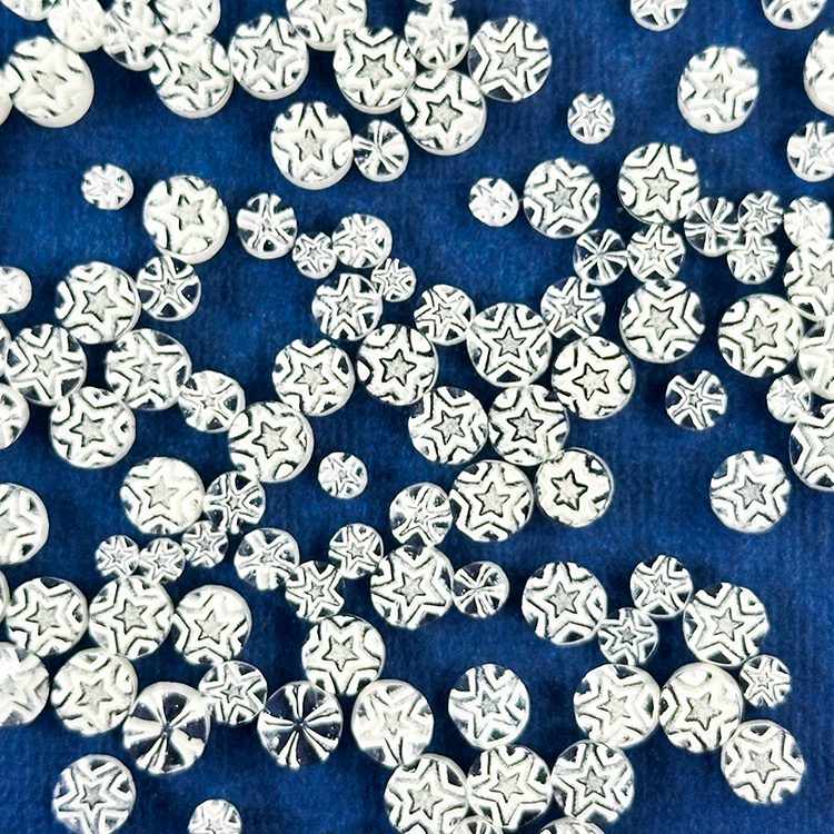 Introducing the Murrine - Mix Size - Glowing Star - 90COE, part of our exclusive Space Collection at Tabitha's Glass Emporium. Designed with precision, these intricate murrine beautifully capture the twinkling magic of stars. Each packet includes a mix of sizes and patterns, providing endless creative possibilities.