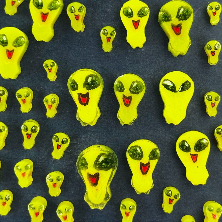 With these Murrine - Mix Size - Green Alien - 96coe, your glasswork will reach new creative heights. Their intricate designs, cosmic inspiration, and glowing effects make them an extraordinary addition to any artistic project.