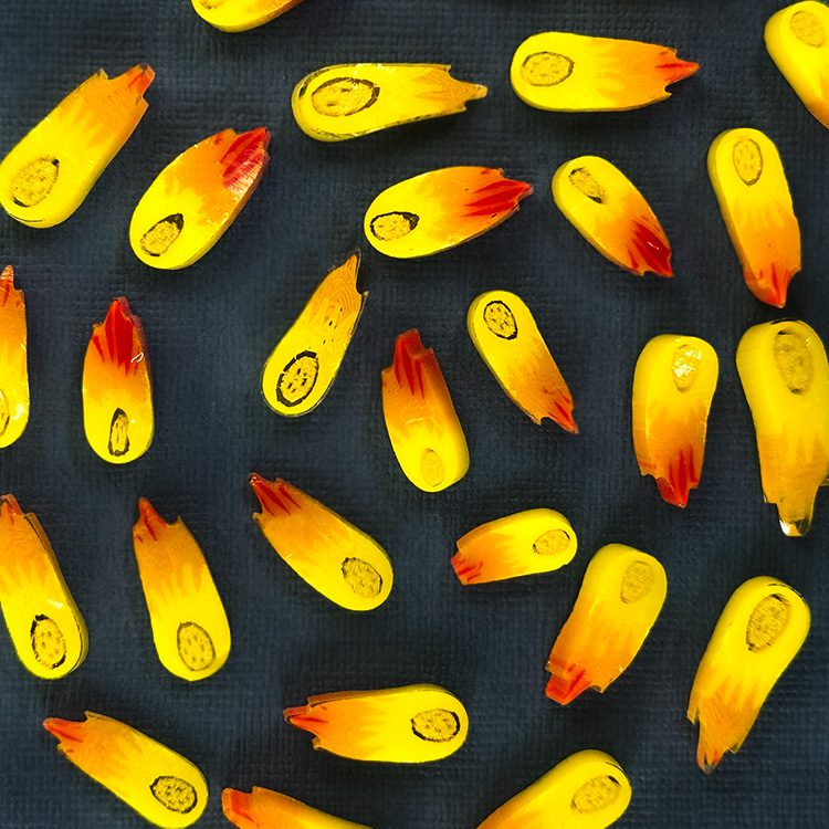 With these Murrine - Mixed Size - Comet - 96COE, your glasswork will reach new creative heights. Their intricate designs, cosmic inspiration, and glowing effects make them an extraordinary addition to any artistic project.