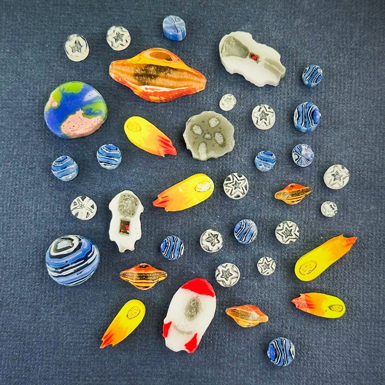 Murrine – Mixed Size – Cosmic – 96COE – stunning celestial designs, some glow-in-the-dark! Made from Oceanside Glass 96COE.