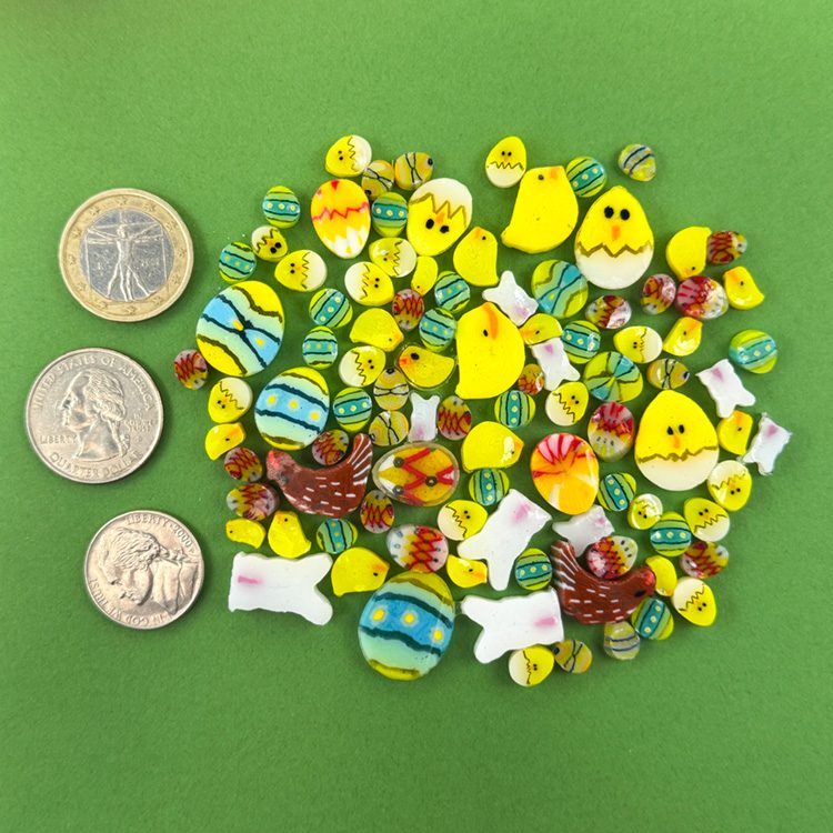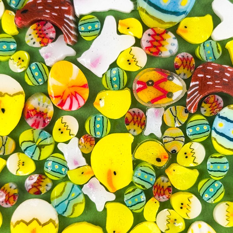 Explore our Mixed Size Easter Mix Murrine bundle at Tabitha's Glass Emporium. Elevate your fused glass projects with depth and perspective. Affordable and essential for your artistic journey, these murrine burst with vibrant colors, effortlessly brightening your creations.