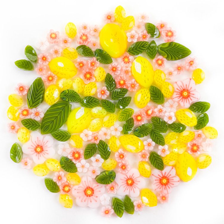The perfect mix for creating Lemon Trees, includes lemons, lemon flower and lemon leaves in both standard and XL size. Made from 100% Bullseye Glass 90COE.