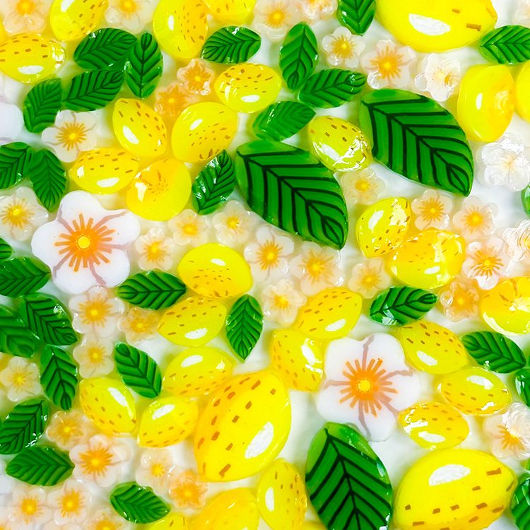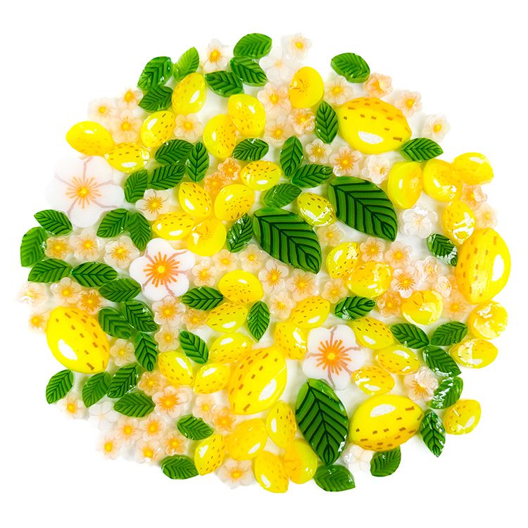 The perfect mix for creating Lemon Trees, includes lemons, lemon flower and lemon leaves in both standard and XL size. Made from 100% Oceanside Glass 96COE.