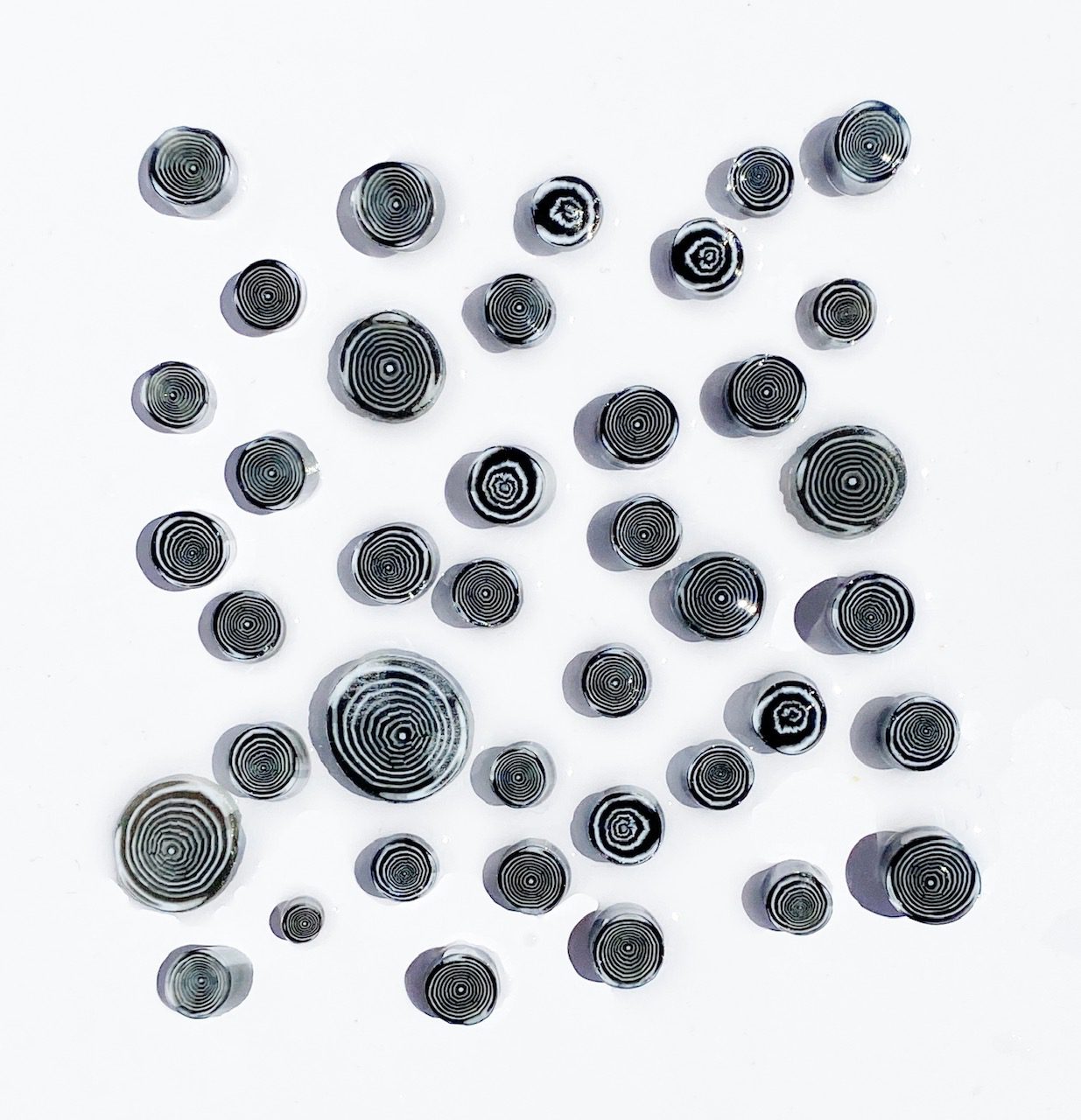 Tabitha Burrill pioneered the unique process that creates our intricate murrine patterns. Inspired by millefiori, these designs offer both beauty and affordability. Made with Bullseye 90COE glass, each murrine is available in 4-6mm slices in 25g bags.
