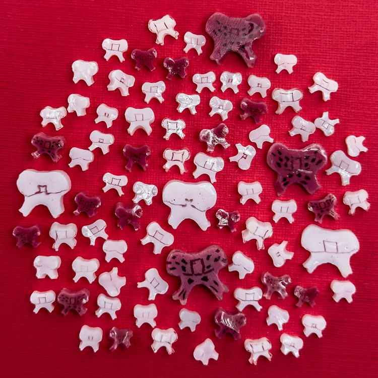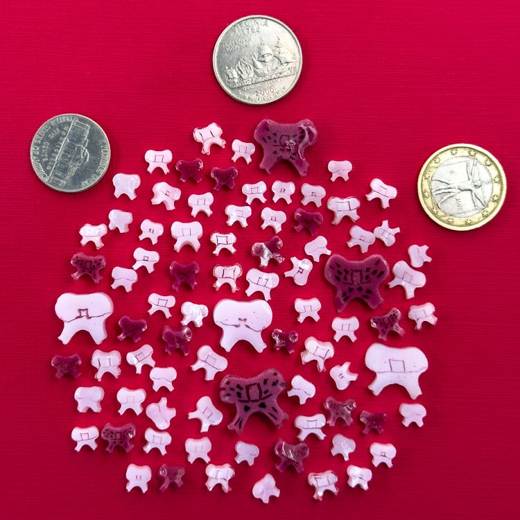 Tabitha’s Glass Emporium offers designer murrines inspired by millefiori. Crafted using Tabitha Burrill’s unique process, our Mixed Size Pink Bow murrines feature exceptional detail and quality.