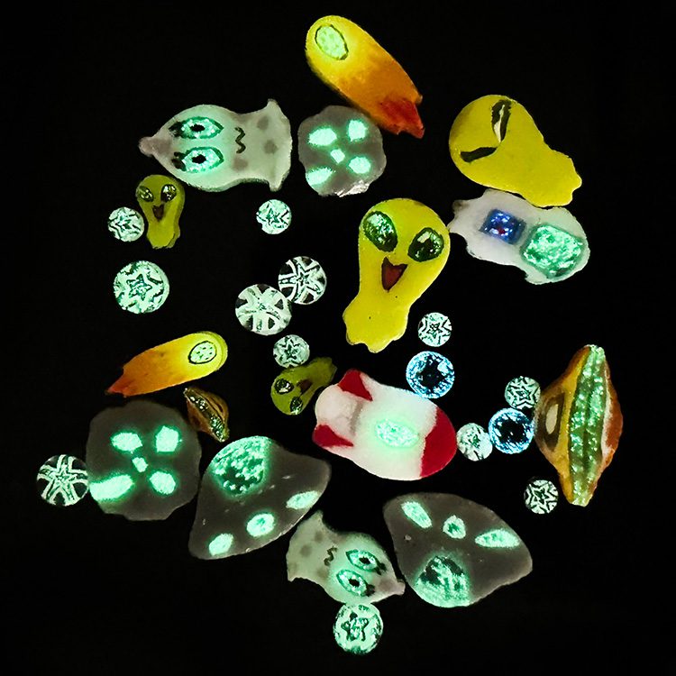 Murrine – Mixed Size – Space – 96COE – stunning celestial designs, some glow-in-the-dark! Made from Oceanside Glass 96COE.