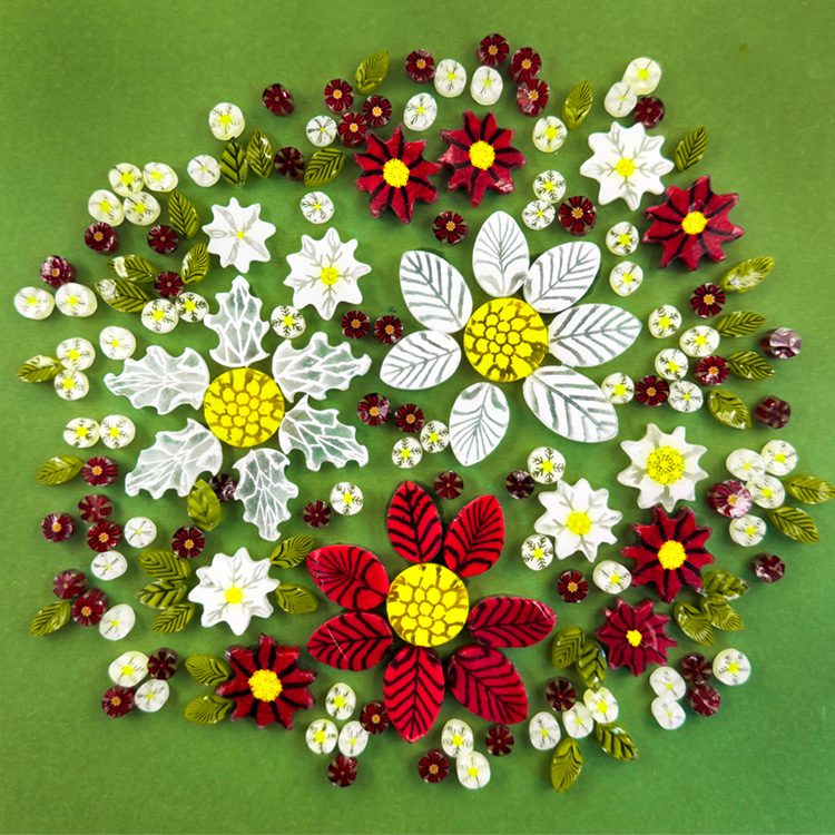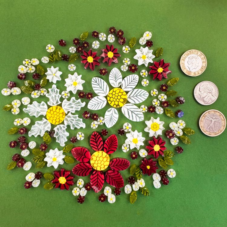 Explore our Poinsettia murrine with the Mixed sized Poinsettia Mix – 100g – Oceanside Glass 96COE.