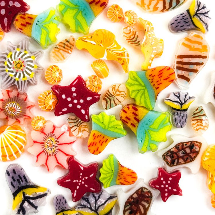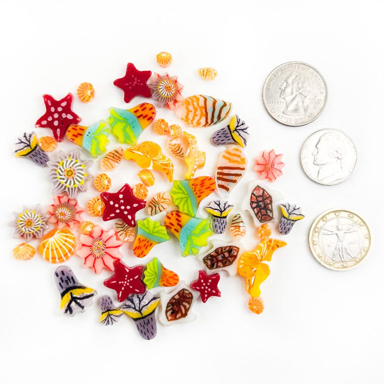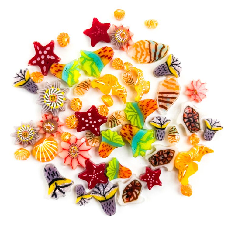 Tropical Sea Life Mixed Sizes murrine – 50g or 2oz – Oceanside Glass 96COE