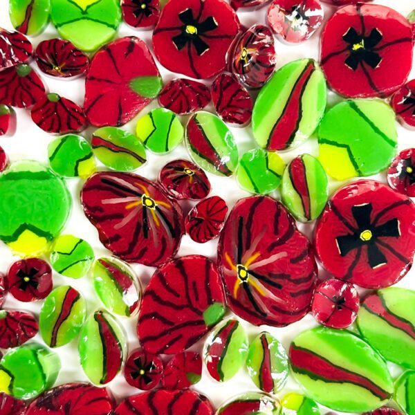 Explore our Remembrance Day Poppy Mix murrine at Tabitha's Glass Emporium and bring your fused glass projects to life. Craft enchanting meadows that offer depth and perspective, all while staying within your budget. These murrine are essential for any artist looking to add vibrant detail to their work.