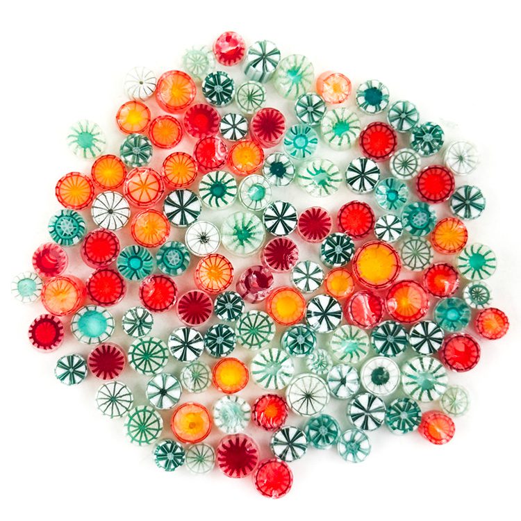 We craft every murrine with 100% Bullseye Glass 90COE, maintaining the highest quality.