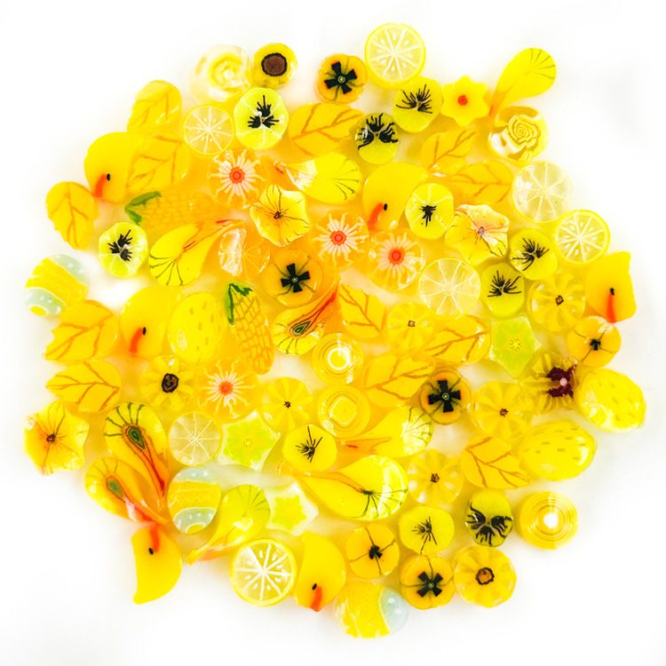 Elevate your glass projects with the addition of these exquisite yellow mix murrine, showcasing intricate designs and unique flair.