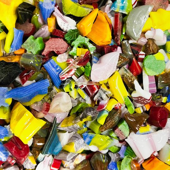 Our XL Murrine Scrap collection includes pieces from the pressed top and tail of each cane, along with slices discarded during the metaconules processing procedure and rigorous quality control. While these pieces may have imperfections, they still offer incredible potential for creative use. These scraps are a collection of hidden gems, perfect for those seeking budget-friendly materials that don’t compromise on quality.