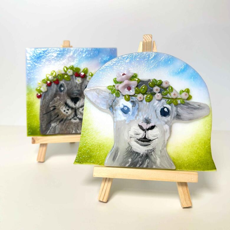 Perfect for smaller glass pieces, this small wooden easel is versatile enough to display a variety of fused glass art styles. It is a thoughtful addition to any collection and can also be sold together with the desired artwork, offering a complete presentation for customers or as a gift for loved ones.