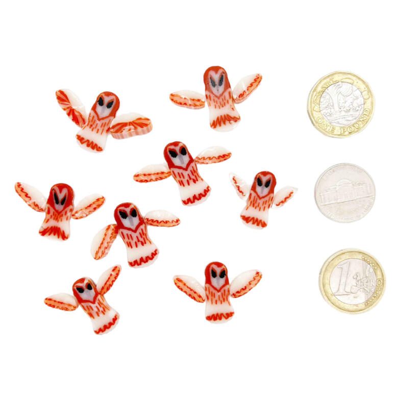 Exclusively, Tabitha’s Glass Emporium proudly stands as the creator and producer of XL Barn Owl Murrine, exceeding 10mm / 1/2 inch in diameter. Moreover these larger murrine open up new dimensions of creative potential, inviting you to explore bolder designs and concepts