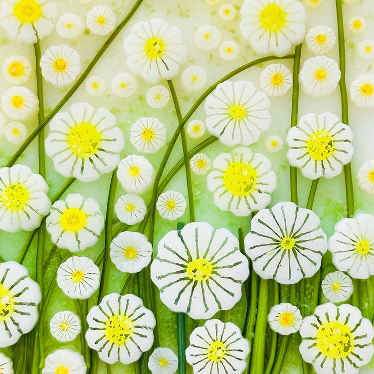 At Tabitha’s Glass Emporium, we proudly create and produce XL Murrine, each piece exceeding 10mm / 1/2 inch in diameter. Transform your glass art with the beautiful XL Daisy Murrine, made from 100% Bullseye Glass for exceptional quality and color.