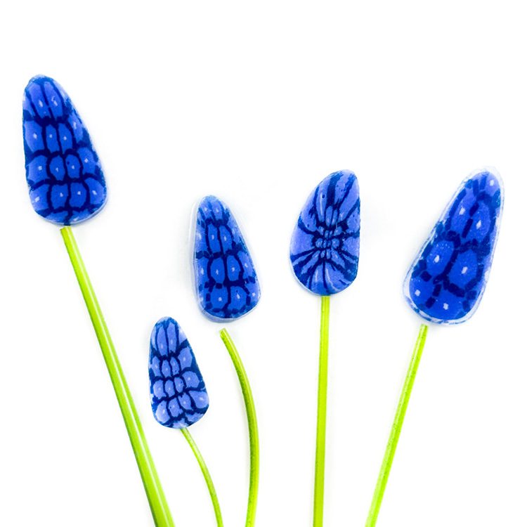 Exclusively, Tabitha’s Glass Emporium proudly stands as the creator and producer of XL Murrine, exceeding 10mm / 1/2 inch in diameter. Moreover these larger murrine open up new dimensions of creative potential, inviting you to explore bolder designs and concepts. Add a burst of beauty to your glass projects with XL Delphinium Plant murrine—ideal for creating stunning designs that capture the spirit of vibrant flowers!