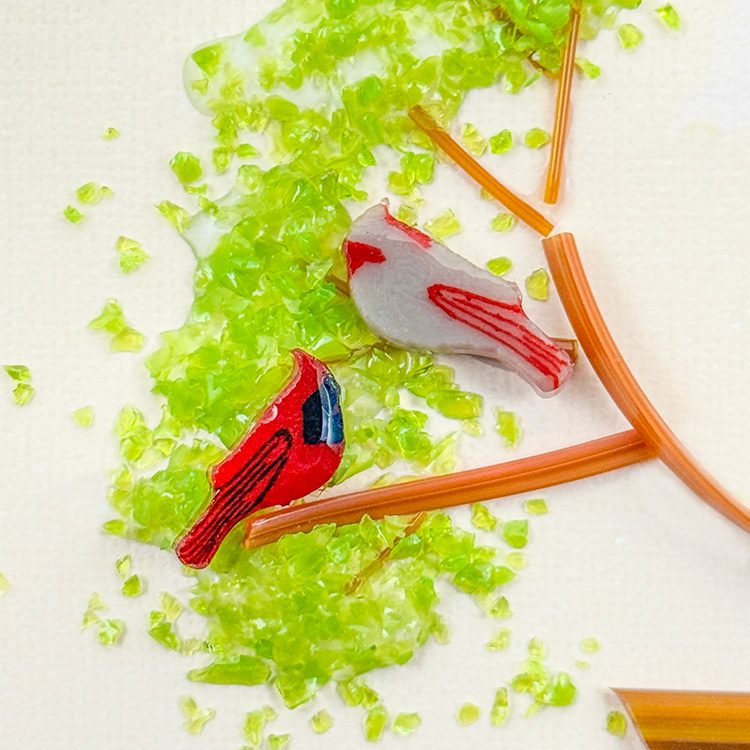 Enhance your glass art with XL Murrine – Female Cardinal – 90COE. Made from 100% Bullseye Glass. Explore our exquisite collection today.