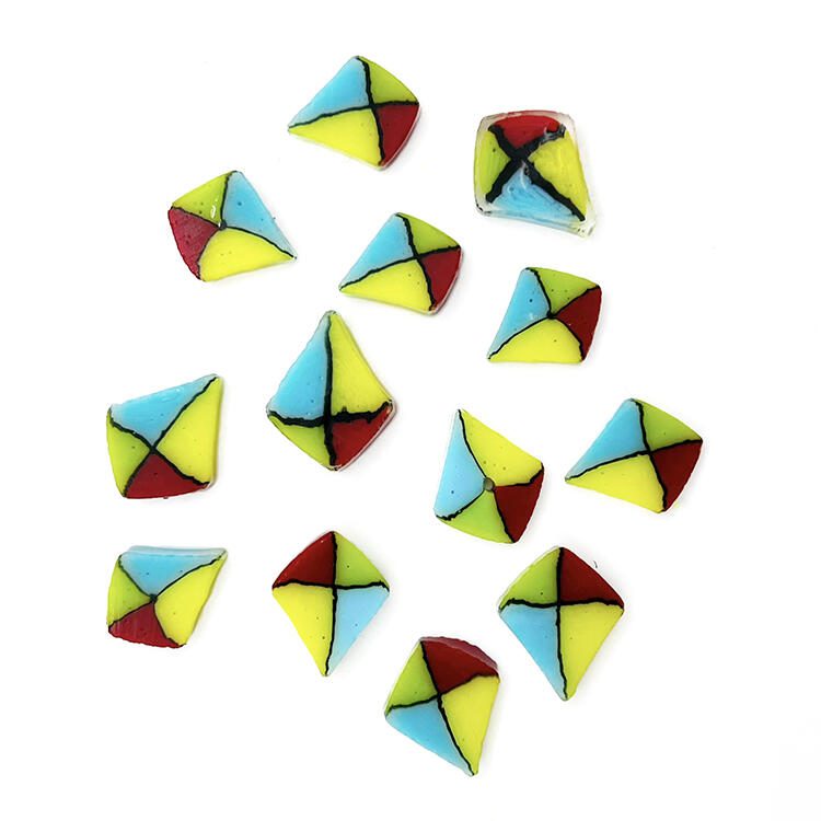What sets us apart is our unique process, pioneered by Tabitha Burrill at Tabitha's Glass Emporium. This process allows us to create intricate murrine patterns reminiscent of millefiori, all at an incredibly affordable price point. Every piece is crafted using 100% Bullseye Glass 90COE for exceptional quality.
