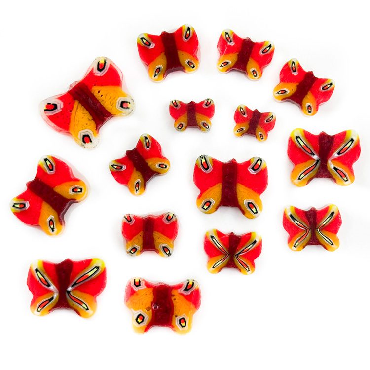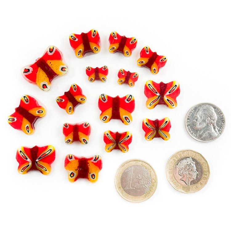 XL Murrine – Mixed Size – Red and Orange Butterflies – 90COE