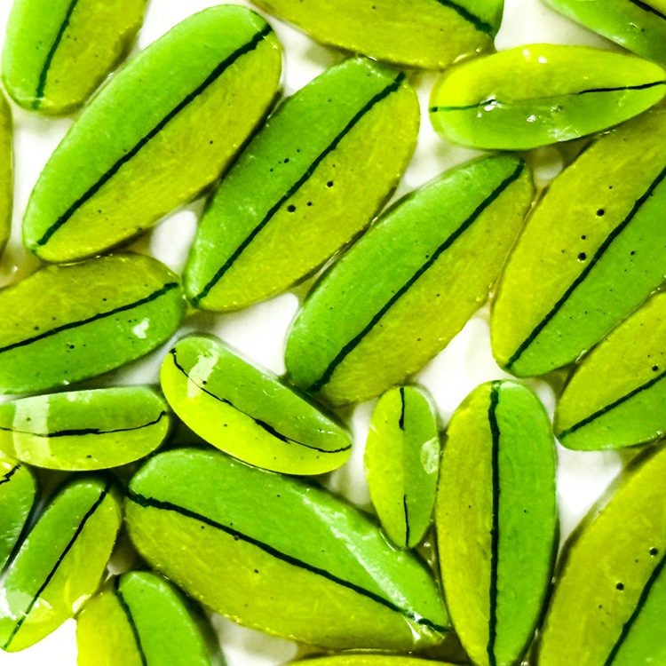 These XL murrine olive leaves are perfect for creating a beautiful olive tree but also pair perfectly with our corn on the cob murrine. Made from 100% Bullseye Glass – 90COE.