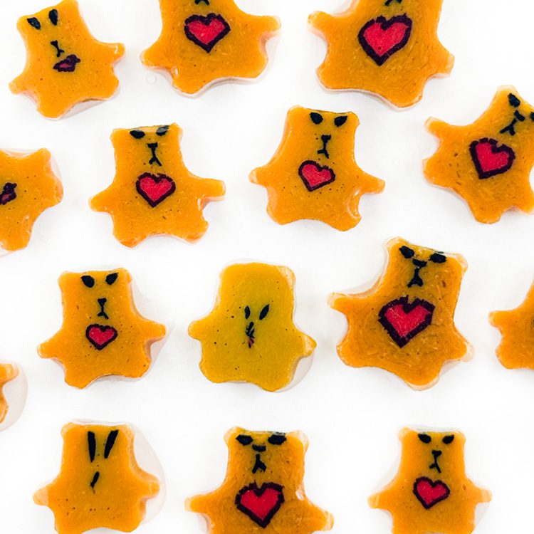 XL Murrine – Sad Bear – All made with 100% Bullseye Glass 90COE. They can be purchased in 1oz bags.