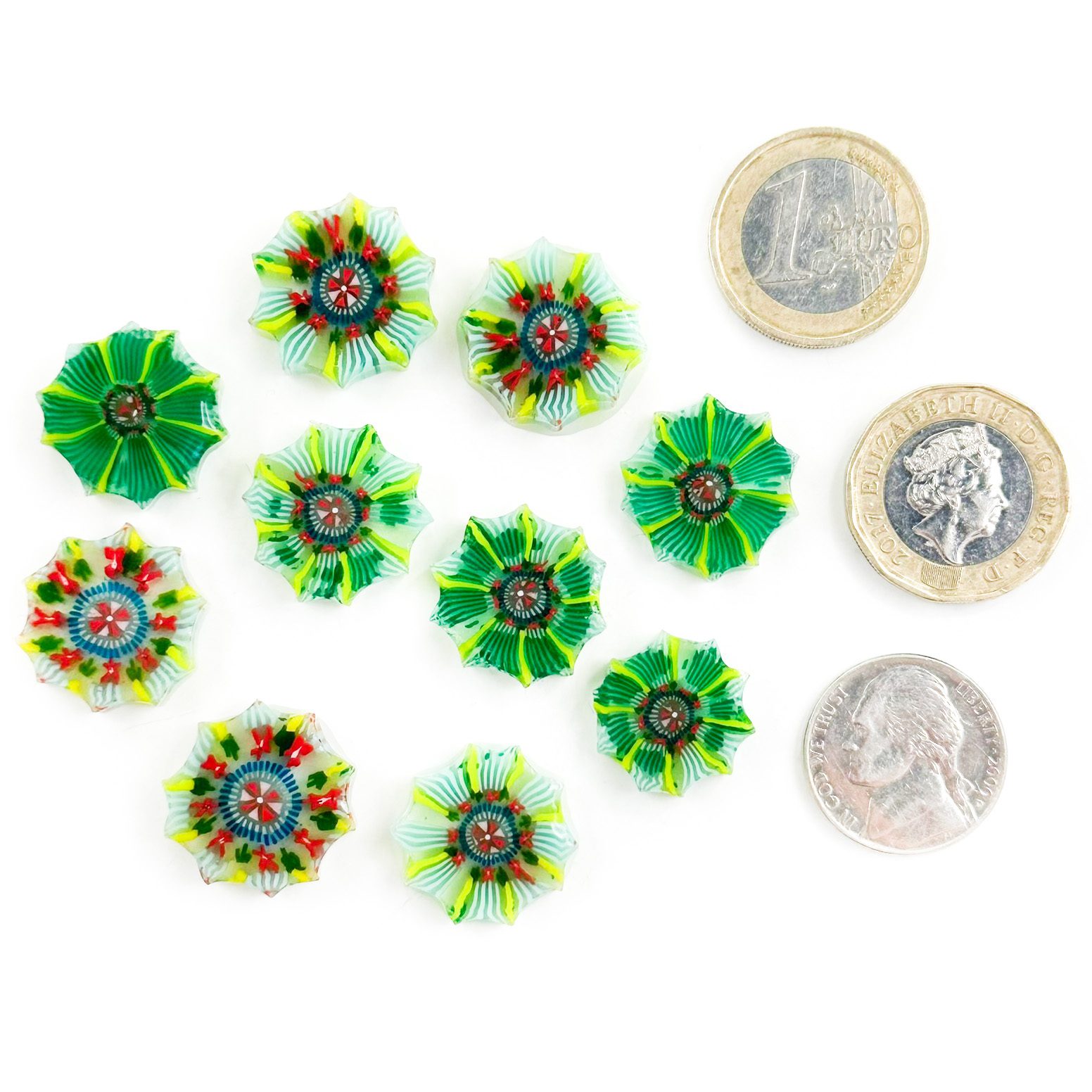 At Tabitha’s Glass Emporium, we proudly create and produce XL Murrine, each exceeding 10mm (1/2 inch) in diameter. Our XL Summer Swirl Mandala Murrine and other large murrine open up exciting new creative possibilities. These pieces allow you to craft bold, innovative designs.